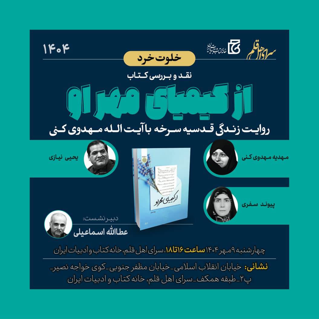 خلوت خرد نقد و بررسی کتاب از کیمیای مهر او ۰۷ مهر ۱۴۰۴ | ۱۵:۰۵ کد : ۵۸۴۶ اطلاعیه ارسال به دیگران نام شما ایمیل شما ایمیل دریافتکننده ارسال انصراف تعداد بازدید:۲۳