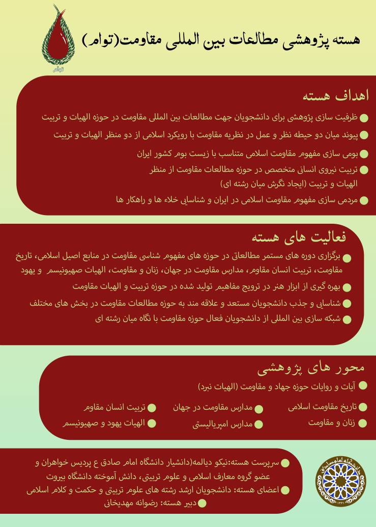 هسته دانشجویی پژوهشی مطالعات بینالمللی مقاومت(توام) ارسال به دیگران نام شما ایمیل شما ایمیل دریافتکننده ارسال انصراف